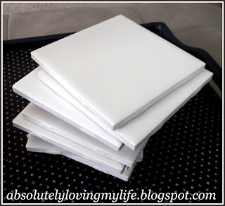 Since the coasters are always out and always being used, I felt the need to address this problem. Awhile ago, I saw someone use $.16 tiles from Lowe’s to make beautiful, practical coasters, and I thought…..Problem Solved! I'm not sure who originally thought of this idea, but whoever thought of it is a genious.